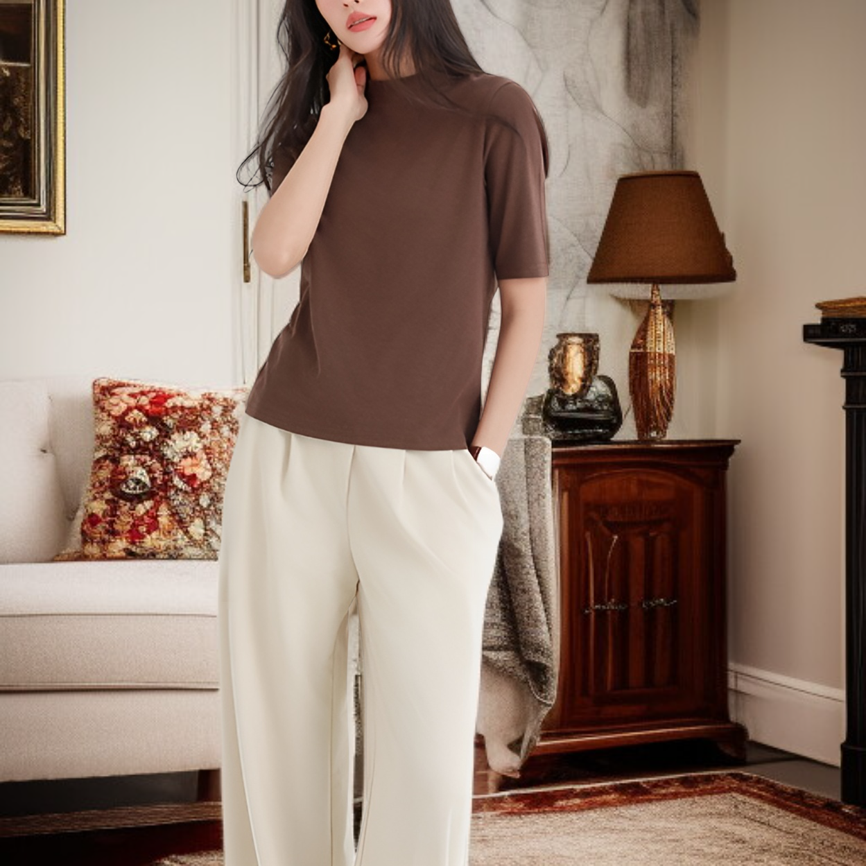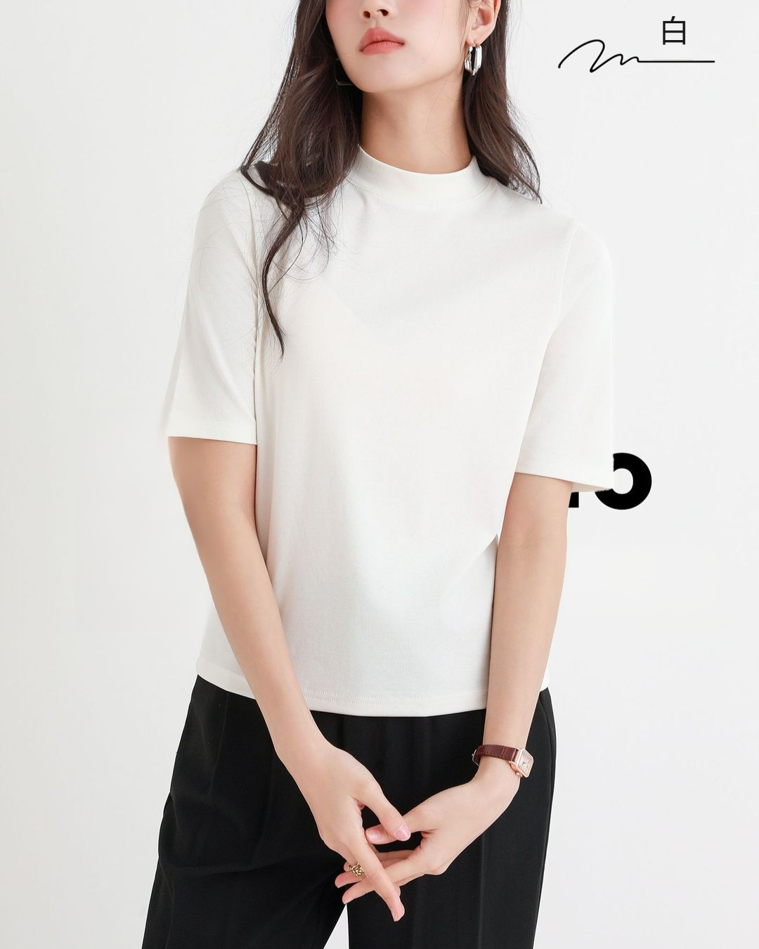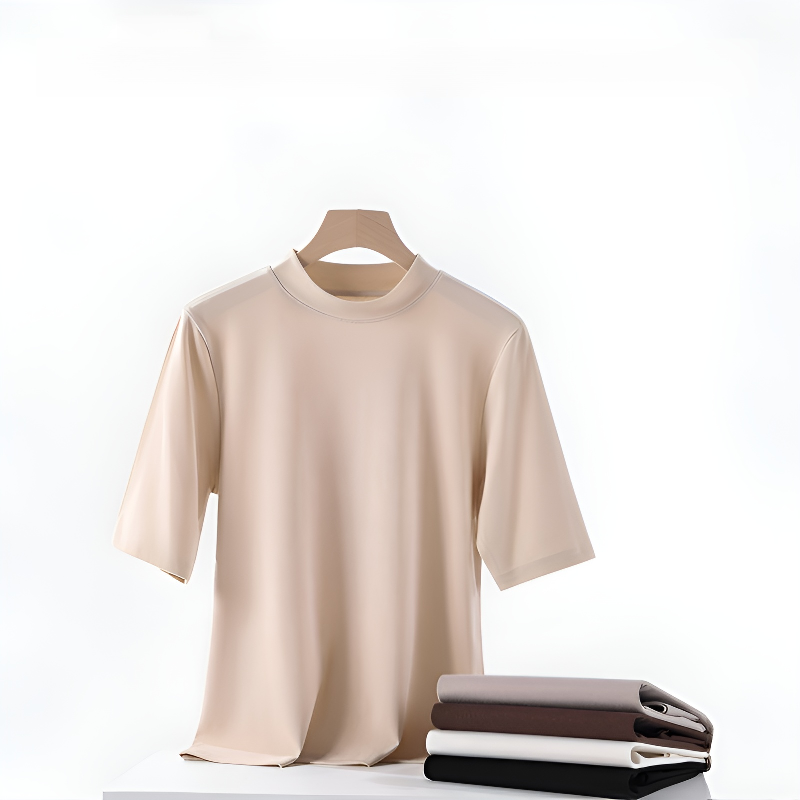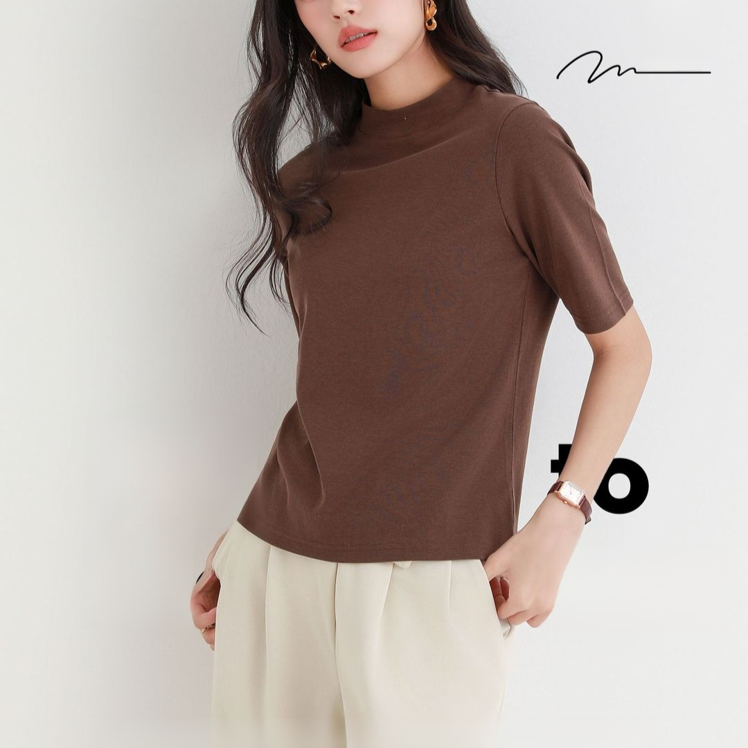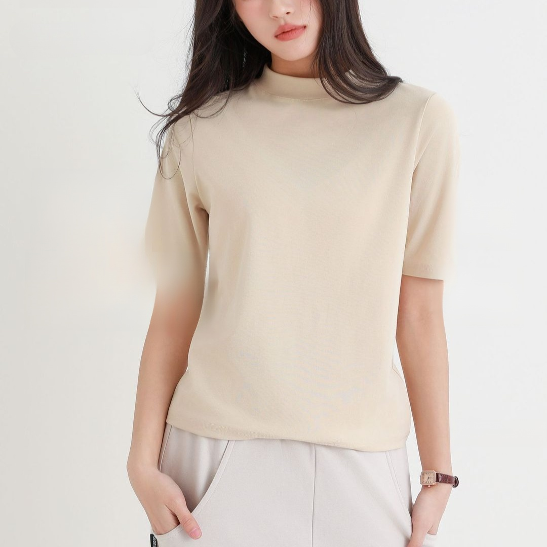 スタンドカラー薄手Tシャツ ゆったりシルエット